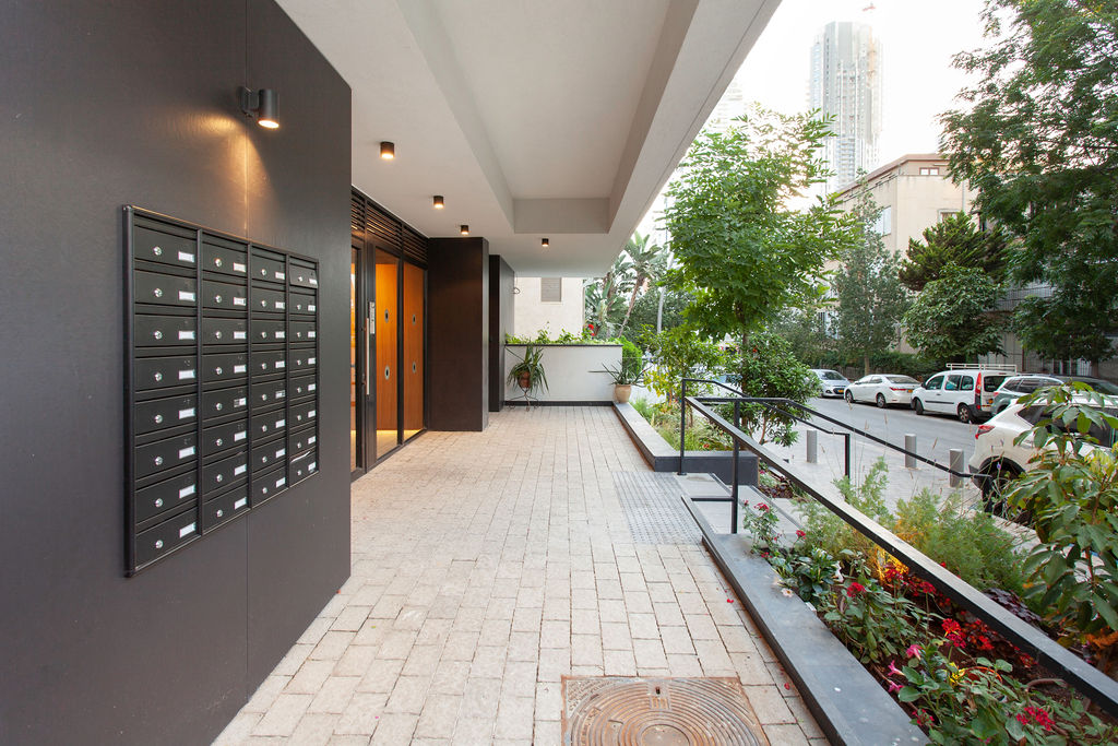 החוויה נמשכת במרחב המשותף, באמצעות עיצוב מוקפד של לובי הכניסה ודגש על הקשר בין חלקו הפנימי של הבניין לפיתוח הסביבתי הנרחב.